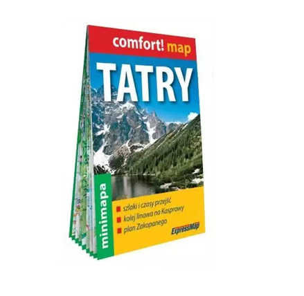 Giewont, Kasprowy Wierch, Dolina Pięciu Stawów Polskich, Jaskinia Mroźna Dwustronnie laminowana, wygodna w składaniu i trwała mapa pomoże trafić do największych atrakcji Tatr. Miniaturowe wydanie w niezwykle poręcznym formacie mieści bogatą i aktualną treść turystyczną. Dodatkowo zawiera fragment szczegółowej mapy Tatr w skali 1:30 000 (1 cm – 300 m) obejmujący kolej linową na Kasprowy Wierch, wyciągi Gąsienicowa i Goryczkowa, Kuźnice, schronisko Murowaniec na Hali Gąsienicowej oraz schronisko na polanie Kalatówki.